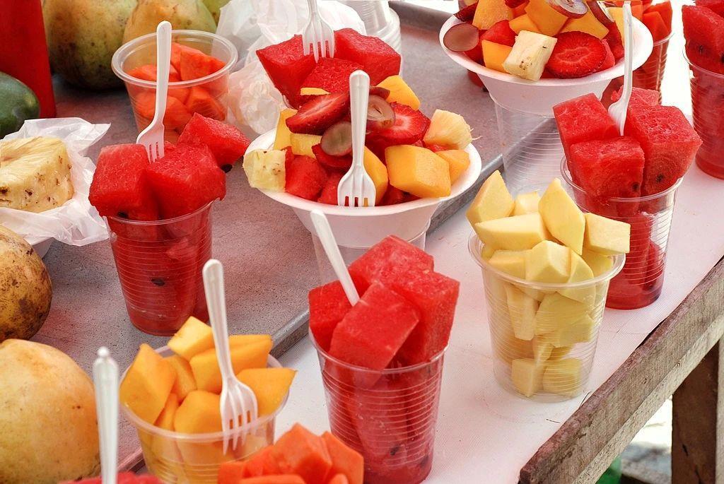 路边摊位上摆放好的果切,我们并不清楚制作和存放时间。水果变质的程度会随着存放时间的延长而增加,食用安全风险也会随之增加。