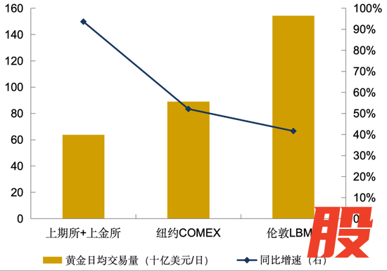 图3 上海两大黄金交易所成交量迅速扩张
