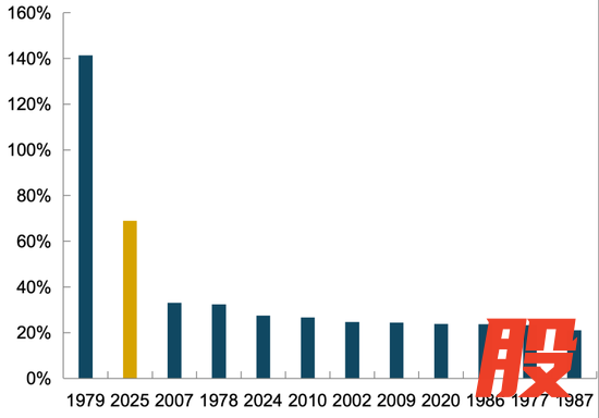 图1 黄金年度涨幅创1979年以来最强表现